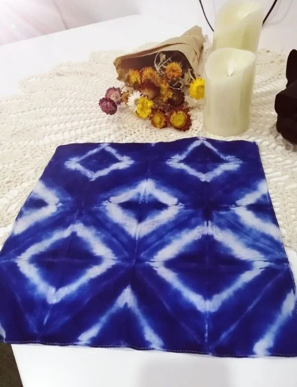 扎染通过折、压、揉、缝等方式捆扎染色,再拆去捆扎或缝线,形成一定的图案花纹,一幅幅魅力动人的作品就呈现出来了,扎染作品受到捆扎技法的不同,所呈现的图案、花纹也样式多变,具有令人惊叹的艺术魅力。
